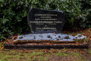 Als ik een grasmaaier door ons dorp hoor rijden, zie ik vaak het beeld voor me van Jans Scholtemeier. De mensen die al 10 jaar of langer in Witteveen wonen herkennen het meteen. Een lange vrolijke man, markante kop met oranje oorbescherming, reed op de maaier in ons dorp van grasveld naar grasveld. Altijd vrolijk en positief, een striptekenaar had er een prachtig plaatje van kunnen tekenen. Vertrok op leeftijd naar de voorzieningen in Westerbork en kwam nog eenmaal, gestrekt, langs zijn geliefde huis aan de Talmaweg. Wietske was hem net voor.