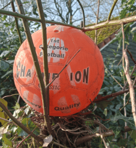 Hoger, steeds hoger, vloog hij boven het plantsoen, de sigaar van ons dorp. Zo hoog was nog nooit een bal geweest. Zelfs over het speciale vangnet, boven de Rodo om uiteindelijk de afdaling in te zetten. De landing was aangenaam, lekker in het dichte struikgewas.