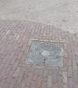 Bij fiets-vertrek stond er op de centrale kruising in ons dorp een tankwagen, het riooldeksel stond open. Een medewerker hield een grote slurf in de put.